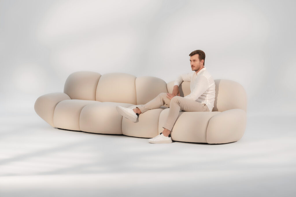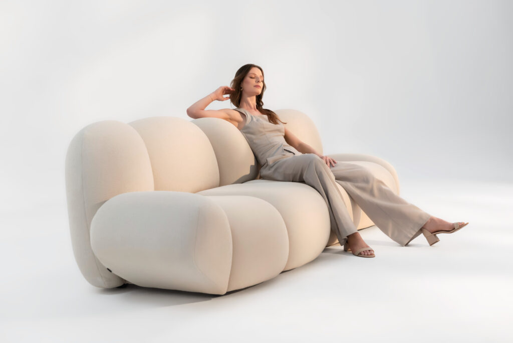 Inspirada na leveza flutuante das nuvens, Nuage traduz o movimento etéreo do céu em curvas orgânicas que acolhem o corpo com naturalidade. O próprio nome, que significa “nuvem” em francês — língua materna do designer — já revela o conceito central da linha: suavidade, fluidez e liberdade formal